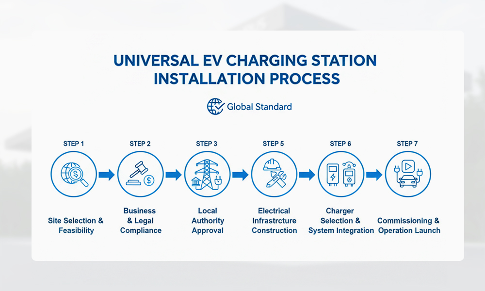 Although technical standards and regulations vary by country, EV charging station installation follows a clear and globally applicable process.